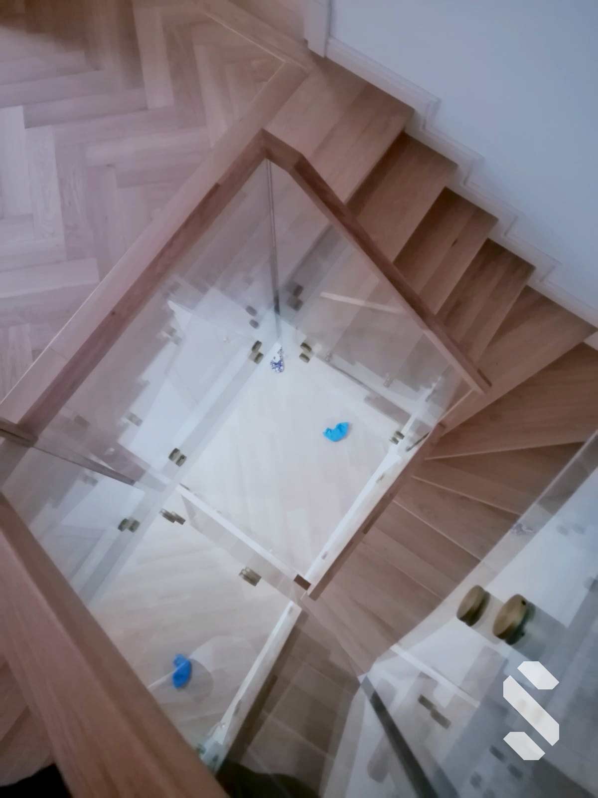 Acestea soluție presupune realizarea scări complet din sticlă. Atât treptele, cât și balustrada sunt realizate din sticlă securizată și laminată.